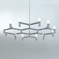 LED-Wandleuchte, deren Form vom Kristall einer Schneeflocke inspiriert ist. Es hat eine Aluminiumdruckgussstruktur mit Gläsern und Diffusoren aus sandgestrahltem Glas oder auf Anfrage aus gestreiftem transparentem Glas. Die Beleuchtung ist diffus. Crown ist in den Ausführungen aus poliertem handgebürstetem Aluminium, vergoldet oder schwarz plattiert oder matt in Weiß, Schwarz und Gold erhältlich. Ein Nemo-Kit mit G9-LED-Lampen ist erhältlich. Diese Wandleuchte schafft dank ihrer besonderen Struktur einen harmonischen Lichtweg.
