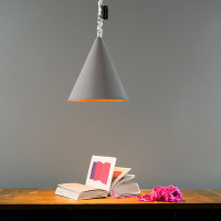 Hängeleuchte mit schwarzem konischem Lampenschirm. Die Eleganz des Tafeleffekts ist perfekt auf die verschiedenen Farben abgestimmt, die für den Innenbereich zur Verfügung stehen. Das Kabel ist mit einem Textilmaterial überzogen, das eine besondere Wellung erzeugt, ein Element, das diese Lampe auszeichnet. Durchmesser 29 cm.