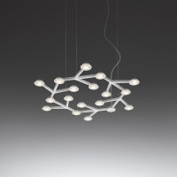 Minimaler Designer-Kronleuchter bestehend aus 9 quadratischen Modulen in weißer oder schwarzer Farben. Die Lichtquelle ist dimmbare LED. Die Struktur besteht aus Aluminium, Polycarbonat und Eisen. Der Fahrer ist im Lieferumfang enthalten. Länge: 149 cm.