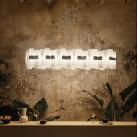 Lollo ist eine moderne Stehleuchte, die sich durch eine Glassäule mit Rippeneffekt aus den von Slamp patentierten unzerbrechlichen Technopolymeren auszeichnet. Zwei Ringe aus Steelflex® mit kleinen vertikalen Ziereinschnitten werten das Design dieser Stehleuchte auf. Die Lollo ist mit 3 LED-Lichtquellen ausgestattet, deren Lichtstärke mit einem Bodendimmer geregelt werden kann. Es ist eine elegante Lampe, die sich als unverwechselbares Element im Inneren eines Wohn- oder Schlafzimmers zeigt.