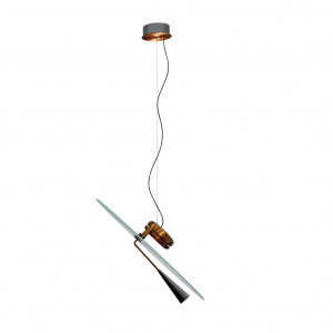 Die Kronleuchter-Version zeichnet sich durch eine Metallstruktur mit goldenem Finish und schwarzen Details mit kugelförmigen Diffusoren aus weißem mundgeblasenem Triplex-Glas aus. Erhältlich in zwei verschiedenen Modellen: mit zwölf und sechs Lichtpunkten.