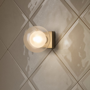 • Materialauswahl: Satin- oder Opalglas ist ideal für das Badezimmer. Denken Sie auch an eine Lampe mit Schirm, deren Licht auf den Spiegel gerichtet ist.