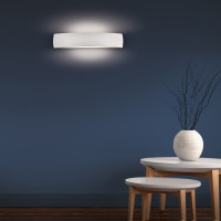 Alba is the perfect wall lamp to give a touch of modern style to your spaces. Its minimal design easily adapts to any type of décor, creating a cozy and refined atmosphere. Whether it's the living room, the hallway, the entrance or the stairs, this wall lamp will illuminate every corner of your home with class. Alba's matte white finish makes it even more versatile, easily combining with other colors in your room. You will be able to play with shades and nuances, creating a unique and personalized lighting effect. Alba is available in two different sizes: large and small.