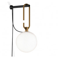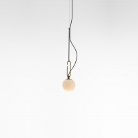 Nh is an oriental-inspired design floor lamp. It is characterized by a thin and slender rod with a round base and a spherical diffuser in white glass. Nh is ideal for furnishing the living room or bedroom, thanks to its sober and harmonious appearance it fits well into various styles of furniture. It has a low energy consumption LED source. Available in black / brass finish.