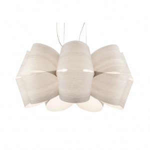 Pendant lamps and ceiling lamps made of polilux wood, microcorrugated polilux, metalux chrome, of captivating design and available in various colours.