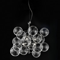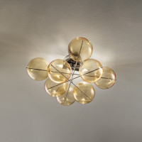Atom is a modern ceiling lamp, with a decorative and not only functional geometric structure. Like atoms, Atom represents the particles we are made of. It fits well in environments with an original design. Simplicity and purity tell of a perfect sign that has become light and shimmering decoration. It becomes atmo-sphere in a sinuous movement of particles that shine in the room where it is applied. A diffused and homogeneous light describes Atom, able to illuminate large spaces with a modern design.