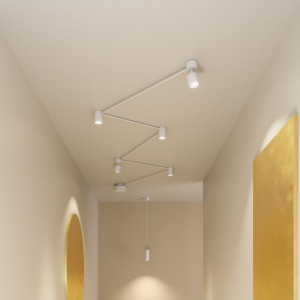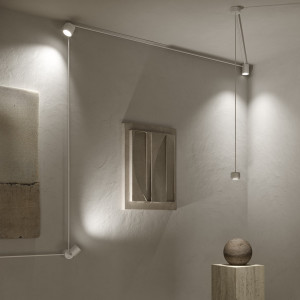 The Pivot lamps were born from an idea of ​​the Japanese designer Ryosuke Fukusada. These modern lamps allow you to create infinite stylistic and luminous possibilities, using a single light point. It is a lighting system made up of three interdependent elements: a small cylinder inside which the LED source is located, two superimposed rotating rings that allow each single light source to be connected to two tubular metal channels, thus giving rise to a modular and linear system that allows you to bring lighting wherever you want. Pivot lamps are a luminous element with which to “play” and illuminate the rooms, both from a functional and an aesthetic point of view. The design of the Pivot lamps is inspired by the hishaku, a bamboo ladle used in Japan to get water with which to wash your hands before entering a shrine. Pivot can contain from two to ten light points and thanks to the tubular channels available in various lengths it can extend up to 10 meters, ideal for creating customized lighting projects. The dimmable LED source is housed in the cylinder in a recessed manner, offering high visual comfort, with approximately 6.4 W it develops 700 lumens. The drivers are located inside the ceiling rose and power the entire system. The Pivot system can also be used for the suspension version, it has been designed to be compatible with four other models of Axolight suspension lamps: Jewel Mono, Liaison, Urban mini and Virtus.