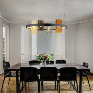 Current trends focus on modern suspended chandeliers with geometric shapes and bright colors. Modern colored chandeliers, in particular, are gaining more and more popularity because they allow you to add personality and style to any environment. On the other hand, if you prefer a more sober and refined look, you can opt for a modern suspended chandelier in more neutral shades.