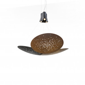 The colored chandeliers proposed by the brand In-es.artdesign spontaneously lend themselves to the use of color, without ever becoming excessive. They are chandeliers capable of furnishing an entire environment, which in this new role becomes more charismatic. The Mezza Luna chandeliers for example are characterized by an essential design, but with a strong contrast of colors. The dialogue between the two internal and external colors that distinguish the fiberglass dome is maximum. The exterior is characterized by dull colors such as black and concrete, while the interior of the lamp is characterized by bright colors such as red, turquoise, orange, magenta or gold. Thanks to the color the chandelier's personality changes completely, as well as the environment that welcomes it.