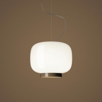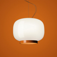 Chouchin Reverse is a contemporary style chandelier whose diffuser incorporates the shapes of traditional Japanese paper lanterns. Chouchin Reverse is made of painted blown glass with a glossy white finish and a colored bottom edge, available in three different colors: orange, green and gray. This original suspension lamps ensures excellent diffused and direct downward lighting. Available in various sizes and with a spherical diffuser or elongated, Chouchin Reverse can be used individually or to create multiple group or linear compositions.