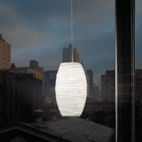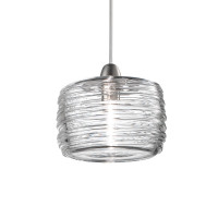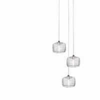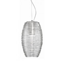 Hand-blown crystal spotlight, covered with strands of molten glass, which create a sort of texture to cocoon. This small bright lamp is applicable to wall or to ceiling, and is available in white, black or transparent. Metal parts: nickel satin.