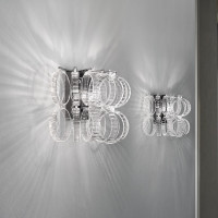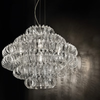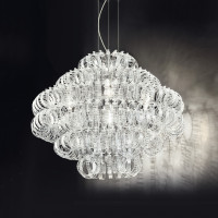 Great ceiling light with brilliant glass rings and chromed metal parts. A ceiling lamp to decorate and enrich your environments, also available in other shapes and sizes and in many colors to choose from: crystal transparent rigadin, alexandrite rigadin, multicolor, white, black, orange.