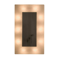 Bright frame with mirror. Made of steel with bright parts (supplied with bulb) in Nebulite®, a material made of resin and glass fibers. Dimensions: 83x83x12 cm. Made in Italy.
