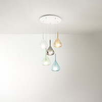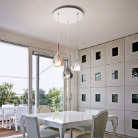 Lila is an ideal chandelier for the living room, characterized by a drop-shaped borosilicate glass diffuser. This suspension lamp blends in very well with modern furnishings. It is available in different color finishes, amber, smoky, light blue, transparent green and transparent, colors that give the lamp aesthetic value and an extra touch. Transparent cable length 3500 mm. Suspension must be installed on a canopy, which can be purchased separately.