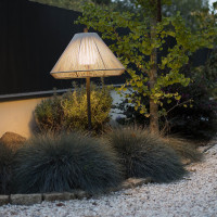 Saigon is a design lamp, created by Nahtrang, which stands out for its simplicity. This floor lamp is perfect for illuminating outdoor spaces, creating a warm and welcoming atmosphere for your outdoor moments. The Saigon floor lamp has a large beige lampshade made of rope, which lets the light through, creating a beautiful luminous effect that envelops everything around it. There's nothing more relaxing than sitting outside, surrounded by the soft light of this outdoor floor lamp. Saigon is a perfect choice for those who love minimalist design and simplicity. With its pure shape and unique lighting effect, this floor lamp is a stunning addition to any outdoor space. Available in several models and in the version with picket.