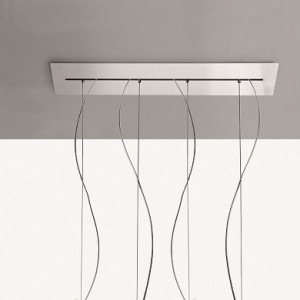 The multiple canopiess are in fact designed to include up to 6-9 suspension lamps. The canopies are offered in both round and linear versions and in multiple sizes. These accessories represent a technical solution that allows you to create luminous cascades with a great visual impact. In addition to the ceiling canopies, the collection includes decentralization kits with which to position the suspension lamps as desired, beyond the location of the power source. The discreet design does not affect aesthetics. The kits are available both for lamps with single cable and for those where one or more steel cables are foreseen.