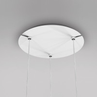 Fullmoon is a modern ball shaped chandelier made of white opaque polyethylene. Fullmoon is available in four different sizes with a white ABS rosette and a transparent suspension cable with a maximum length of 3 meters. This suspension lamp offers the possibility of creating multiple three, five or nine spheres composition, thanks to the multi3, multi5 and cluster accessories, special white painted metal rosettes. Installed in a modern living room, Fullmoon shines bright like a full moon.