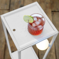 Abachina is the perfect floor lamp for those who want to create a welcoming and sophisticated atmosphere in their home or in their garden. Its lantern shape, with a parallelepiped metal structure in aluminum with a matt white or black finish, is embellished with blown glass spheres of various sizes. The result is a lamp with an elegant and modern design. Abachina is equipped with a small tray on the top, which allows it to be used as a support surface for vases, decorative objects or even electronic devices, thanks to the hole for the passage of cables. Furthermore, the rechargeable battery version makes it perfect for terraces and open spaces, avoiding having to connect the lamp to the electricity supply.