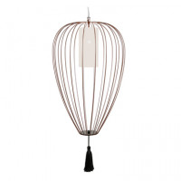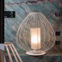 Cell is a floor lamp characterized by a Chinese lantern shape with an open cage structure that allows the light to spread gently. The white or bronze metallic thread, resistant to humidity, helps to create an ethereal and light effect. Proposed both in the indoor and outdoor version. The lampshade of the indoor version is made of linen, which allows the light to filter in in a soft and romantic way. For the outdoor version, on the other hand, opalescent plexiglass is used, which resists bad weather but still maintains a bright and delicate appearance. To complete the design, a black or white silk tassel is added in the bronze version, giving an elegant and refined touch. The Cell lamp is available in two shapes, one more slender and vertical and one more rounded and wide. Both shapes are available in two sizes, to adapt to different space requirements.