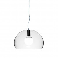 Essential lines dictate the shapes of Big Fl/y, a modern suspension lamp. The inspiration originates from the light and delicate shape of a soap bubble: this is demonstrated by its transparent finishes that reflect light in a delicate and refined way. Big Fl/y also does not have a perfect spherical shape, this gives it even more the shape of a bubble floating in the air. This modern chandelier is available in different sizes to choose according to your needs.