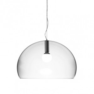 Also part of this collection is FL/Y, a modern chandelier with a hemisphere-shaped diffuser. It is made of transparent and glossy PMMA proposed in various shades of colors, it recalls the idea of ​​a soap bubble, iridescent to the reflections of the light.