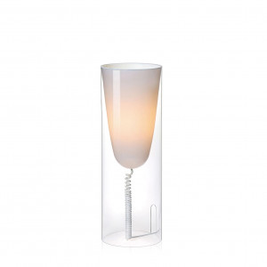 Instead, the E 'lamp is characterized by an essential and romantic design, available in two versions: wall and suspension. The diffuser is characterized by a bell shape with a pleated effect available in various colors while the structure is in chromed metal. E'  lamps are suitable for illuminating multiple environments.