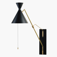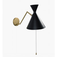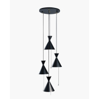 Pascal is a chandelier with lively but simple lines. A 60s design where the elegance of the cones was recognized as an essential element. Perfectly designed elements to ensure maximum efficiency of light comfort thanks to their single ignition. Pascal is a suspension lamp made of metal and brass with satin brass finishes as regards the structure and black for the diffusers. Chandelier available in the 3 lights version with arms and in the one or four lights version. We recommend the use of the chandelier with applique and floor lamp from the same collection.