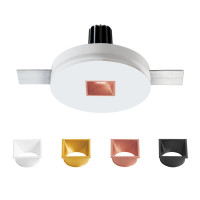 Gypsum ColoRing R3 is a recessed ceiling spotlight suitable for indoor environments. It features three spot lights with LED light source. This type of spotlight allows simultaneous or single switching of the sources. The minimal design facilitates installation in different contexts from domestic to public, offices and workplaces. It is composed of a plaster frame with white finish, PMMA diffuser and body made of white ABS. Complete with round and interchangeable rings proposed in various color finishes.