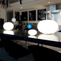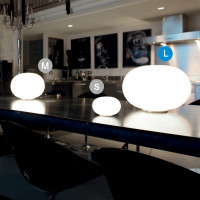 Lucciola is a modern table lamp characterized by an oval shaped diffuser made of satin white blown glass. This lamp can be used to illuminate various home environments furnished in a modern style. The sober design that distinguishes it makes it suitable for any context. Lucciola is available in different sizes, particularly suitable for lighting the living room and bedroom. The combination with chandeliers, wall and floor lamps of the same family is recommended.