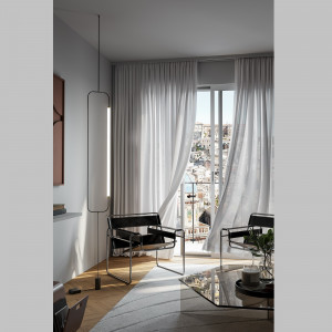Astolfo is a designer floor lamp designed by the designer Amedeo Cavalchini for Lumen Center Italia. Cavalchini is inspired by the knightly epic poetry to make this floor lamp of imported dimensions, which seems a knight armed with a spear. Astolfo has an imposing structure composed of a solid oak or national walnut base, while the ultra-thin rod contains the dimmable LED light source. The pole has a length of almost two meters and is made of black anodized aluminum. A second light source is positioned at the back of the base. On the base there are three splits, that allows you to have a different type of lighting, direct or indirect, depending on how you prefer to position the rod. Astolfo is also proposed in the Astolfo HT version with a base made of steel box with gray graffite finish and solid wood front where the second light source on the back is not present. Astolfo is ideal for furnishing large rooms such as a large and spacious living room.