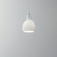 Marina chandelier made of ceramic with a simple metal frame. The diffuser is the particular highlight of this light source. It is machined in a way that makes it resemble the lunar surface, with a slightly irregular surface and small holes resembling craters. Marina is available both as a single pendant, ideal for bedrooms or living rooms, and as a four-point light composition ideal for kitchens or dining tables. This pendant lamp can be integrated with the SmartLuce accessory, which can be ordered separately, for personalised light management.