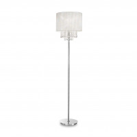 The table lamp has a PVC foil shade with metallic highlights, covered with white threads. Chrome metal frame. Height: 520 mm.