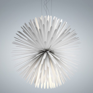 Lightweight was born from the mind of designer Tom Dixon who wanted to reproduce the classic candelabra chandelier in an ultra modern key. Of the classic glass structure remains a stylized geometric structure, realized through the welding of hundreds of metal rod elements. Lightweight is made up of eight arms on which eight small light sources in transparent and satin blown glass are positioned, which allow the light to spread completely in all directions. Lamp designed to illuminate large rooms with high ceilings. Modern and attractive style for residential or contract environments.