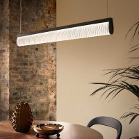 Modula is a modern lamp that plays with light in an unexpected and versatile way. The Plissé and Crystal effects are what make this pendant lamp one of a kind. The Pleated effect, inspired by the columns of medieval cloisters, creates a soft and evocative shading, while the Crystal effect, reminiscent of a texture of bright rhinestones, adds a touch of brightness and glamour. But the distinguishing feature of Modula lies in its homogeneous line of light that runs along the ridge, amplifying the luminous expression and creating a unique and welcoming atmosphere. Modula is ideal for illuminating a rectangular dining table, kitchen or bar counter, but its versatility makes it suitable for any environment. Thanks to its modern and sophisticated aesthetic, Modula is able to adapt to any style of furniture and become the centerpiece of any room.