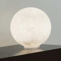 Table lamp. The lamp is a little moon made of Nebulite®, a material composed of resins and fibers, that makes the lamp very bright and atmosphere. Color: white. Diameter: Ø 18 cm. Made in Italy.