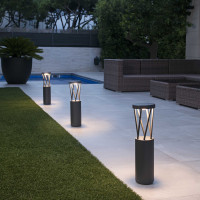 Twist is a modern garden bollard designed by Estudi Ribaudí. This outdoor lamp is made of aluminium finished with dark grey paint. It features a body with a lattice structure that produces a play of light and shadow. It has a polycarbonate diffuser and uses low-consumption LED light sources. Thanks to its IP 65 protection rating, it ensures a good seal in environments subject to the action of atmospheric agents. Available in a large or small version.