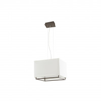 Designer pendant lamp, made of metal with fabric lampshade. 60 cm long and equipped with 2 mt cable, is available in white/beige and dark brown/beige finishes.