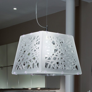 Fleur est une collection des lampadaires de Artempo, en acrilux et avec structure en acier chromé. Disponible en blanc satiné ou effet diamante.