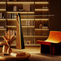 Astolfo est un lampadaire composé d’une base en chêne massif ou en noyer national et d’une tige en aluminium anodisé noir de deux mètres de long dans laquelle est placée la source de lumière LED dimmable. Une deuxième source de lumière, également réglable, est placée à l'arrière de la base. Dans la partie supérieure de la base, trois rainures permettent de choisir la position de la tige par rapport à la base et de la placer selon trois orientations différentes. L'émission de lumière est à la fois directe et indirecte.