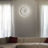 Diffuseur composé de anneaux en métal chromé ou doré. Le plafonnier dispose de octogones en cristal encastrés à l'intérieur. Mesure de la circonférence: 535 mm.
