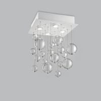 Caractérisé par un rosace rond avec 8 points lumineux et 54 sphères décoratives en verre, ce plafonnier représente un mariage raffiné d'élégance et de fonctionnalité. Disponible en finitions transparent, blanc, noir, rouge et ambre doré, cette lampe de plafond illumine les espaces avec une explosion de lumière qui se reflète et rebondit sur les surfaces cristallines des sphères scintillantes. Chaque détail du plafonnier Bolero est conçu pour offrir une solution esthétique de haut niveau. Les sphères en verre, suspendues à une base solide en inox découpée au laser, descendent légères et élégantes. L'extrême transparence du verre, combinée à la brillance des finitions, confère à l'ensemble de la structure un caractère distinctif et sophistiqué. Cette lampe enrichit non seulement l'espace de lumière, mais elle s'impose également comme un élément de design capable d'animer tout environnement avec sa présence scénique.