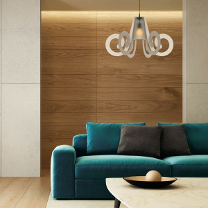 Per il soggiorno punta su un modello più scenografico e proporzionato alla stanza; sopra il tavolo da pranzo scegli una sospensione che illumini bene il piano e si posizioni correttamente in altezza per non ostacolare la vista.
