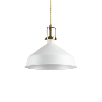 Eris è una lampada a sospensione dallo stile retrò, costituita da una montatura in metallo, diffusore verniciato bianco o nero opaco e dettagli in finitura oro satinato. Il cavo elettrico è intrecciato e rivestito in tessuto. Questa lampada dallo stile vintage con dei richiami all'industrial è ideale per l'illuminazione di aree tipo isole e penisole della cucina o angoli bar. Disponibile in due dimensioni.