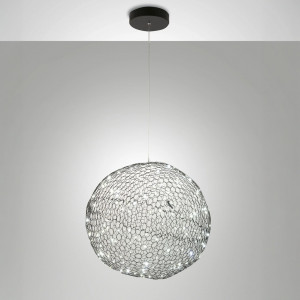 Net è una collezione di lampade di design realizzate seguendo la forma a griglia. Qui, non è fondamentale solo la funzionalità del prodotto ma anche la struttura esteticamente ricercata e particolare. Homa ad esempio, è realizzata a forma di un letto di metallo nella cui superficie viene adagiato un corpo illuminante in vetro soffiato , come un uovo che sta per schiudersi dentro un accogliente nido. Allo stesso tempo in questa collezione vediamo Sumter, in forma ovale e tonda che, i suoi piccoli punti luce diventano dei piccoli brillanti gioiello per la stanza in cui viene applicata. La diffusione della luce per la collezione avviene in modo omogeneo e possono adattarsi ad ambienti moderni e di carattere minimal, come soggiorni oppure luoghi open space che possono comprendere arredi importanti e singolari. Net, lampade di design può incluedere anche la tecnologia Smart Luce che, con il suo apposito accessorio, le lampade di Net potranno essere gestite direttamente da remoto tramite applicazione su smartphone.
