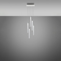 Multispot Tooby è un lampadario di design versatile e funzionale che si presta all'illuminazione di ogni ambiente. Questa lampada a sospensione è composta da una struttura in alluminio, disponibile anodizzato oppure ramato, ed un diffusore in vetro pyrex bianco satinato dalla forma allungata. Multispot Tooby è disponibile sia con rosone circolare ma anche rettangolare e di varie dimensioni per potersi adattare a qualsiasi complemento d'arredo e stanza. Grazie alle varie altezze dei diffusori Multispot Tooby è perfetto per la creazione di dinamiche differenti e giochi di luce scenografici.