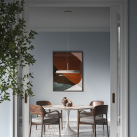 Zero è un lampadario di design caratterizzato da un diffusore di forma circolare e da un dettaglio dorato. Il design. È proposto in due diverse dimensioni di grandezza e in varie finiture di colori a scelta tra Bianco, Nero, Brown Red, Gres Dove-Grey. Dispone di sorgente luminosa LED integrata a luce diretta, dimmerabile TRIAC.